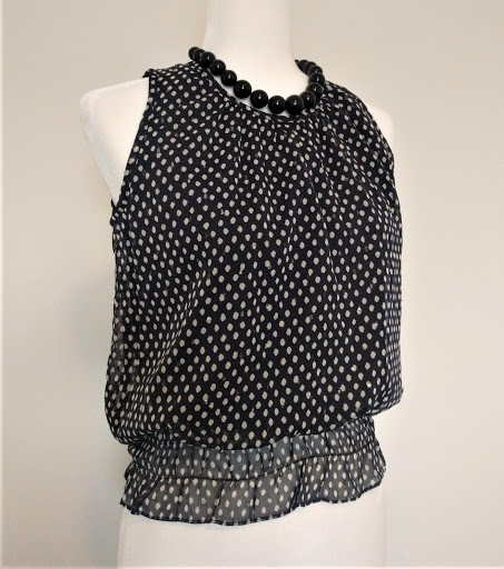 I found this beautiful Ann Taylor 100% cotton black blouse. I'm able to pair it with my white shorts and blue jeans: